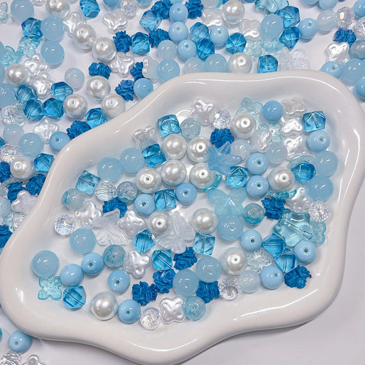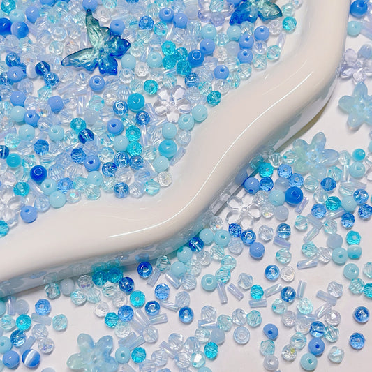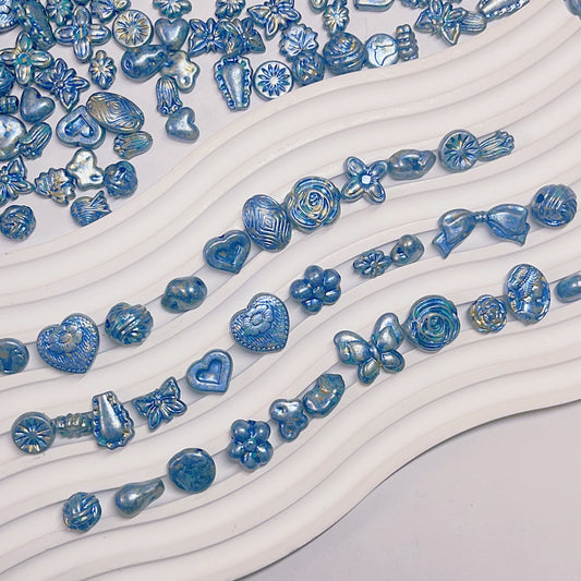 【BZ 407】海の心ー高品質ガラスビーズ&スターライトビーズ&希土晶晶&アクリルビーズ&レジンビーズ(一部夜光)&柔らかい素材フラワー(夜光)