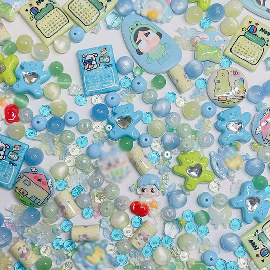 【BZ 395】癒し時間ー高品質アクリルビーズ&レジンビーズ(一部夜光)&希土晶晶&キャツアイ&イラストビーズ&キラキラストーンビーズ(プレゼント付き)