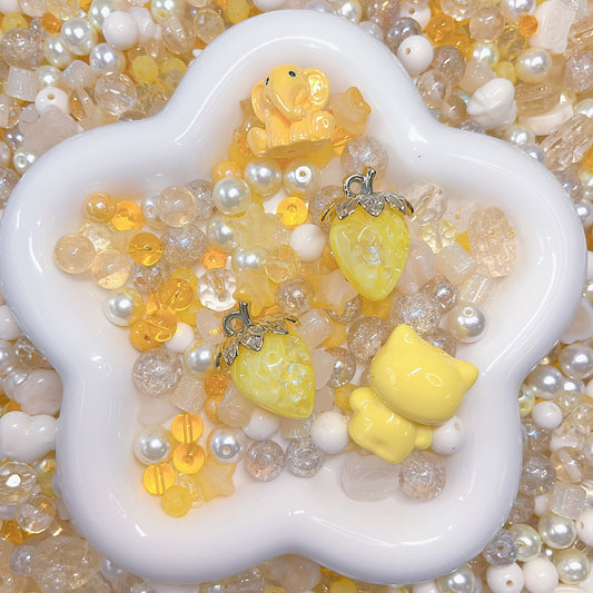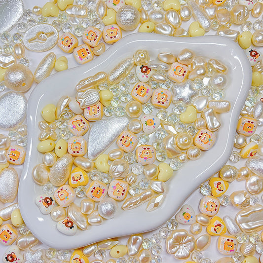 【BZ 764】キュートイエローー高品質バロック風アクリルビーズ 希土晶晶 レリーフ加工ビーズ 小サイズMIX 合わせやすい 豊かなデザイン