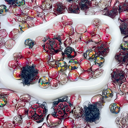 【BZ 767】情熱の薔薇ー高品質夜光樹脂ビーズ 夜光ブーケビーズ 光学メッキ加工バロック風アクリルビーズ ホログラム入り樹脂ビーズ ビジュービーズーNEW