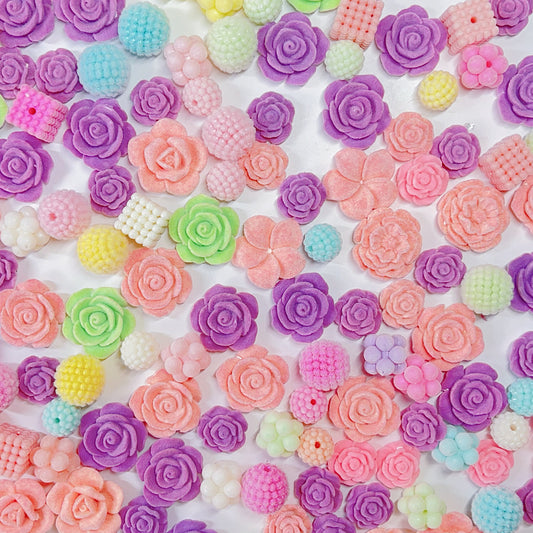 【BZ 744】ふわふわーフロッキー素材ビーズミックス 豊かなデザイン 穴あき パステルカラー