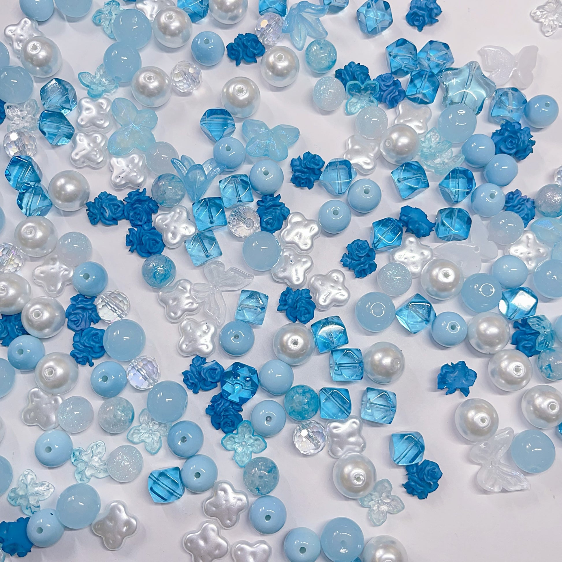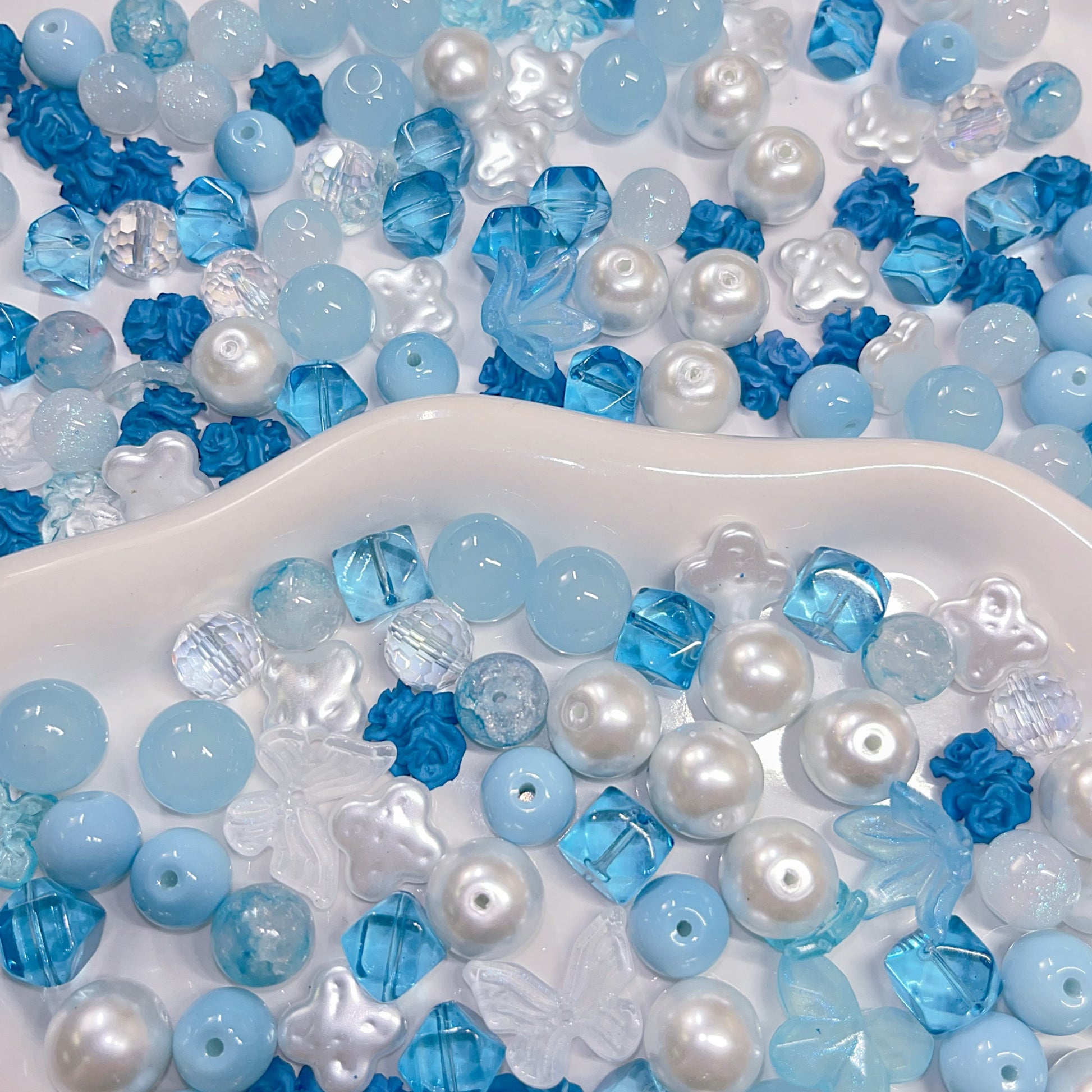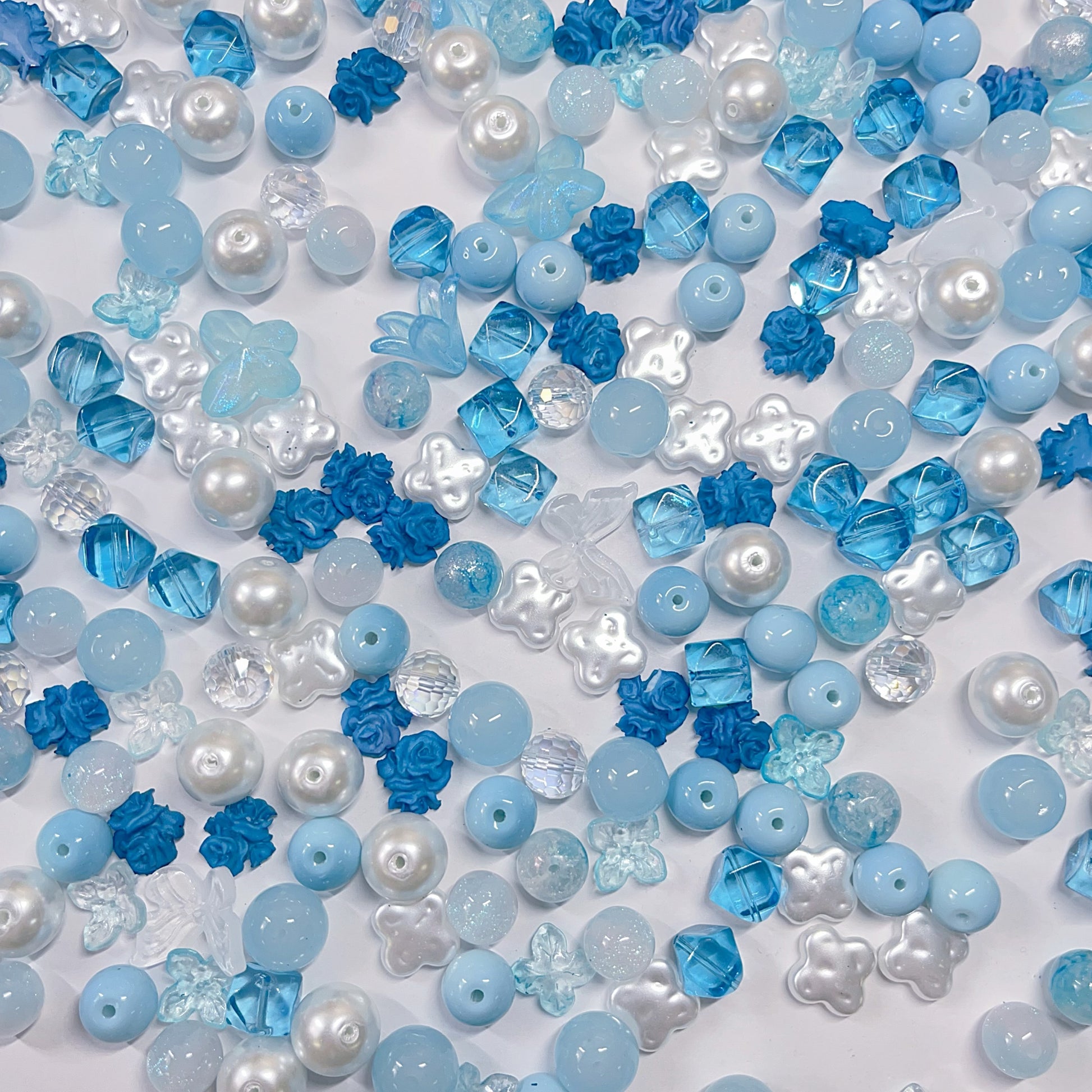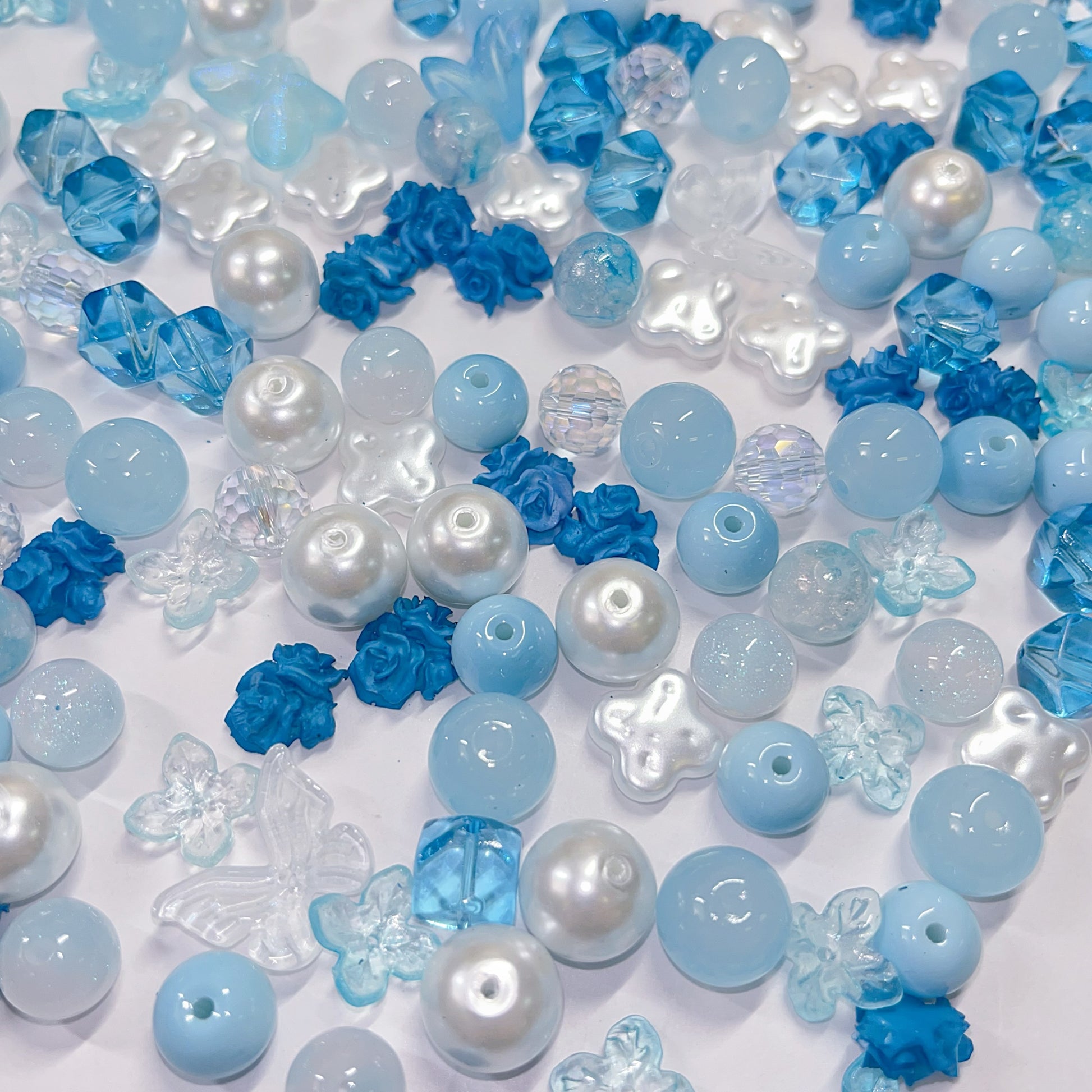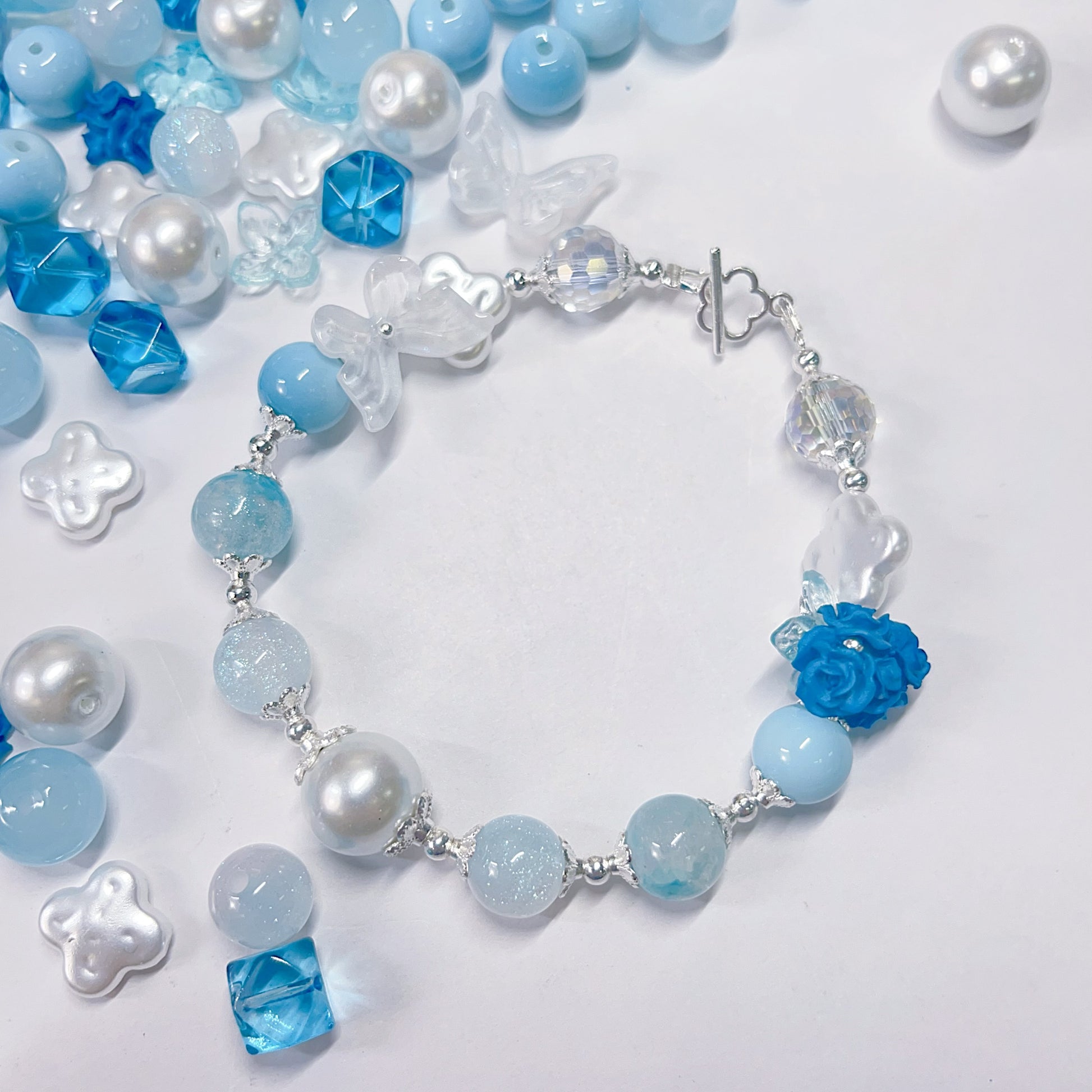 【BZ 407】海の心ー高品質ガラスビーズ&スターライトビーズ&希土晶晶&アクリルビーズ&レジンビーズ(一部夜光)&柔らかい素材フラワー(夜光)