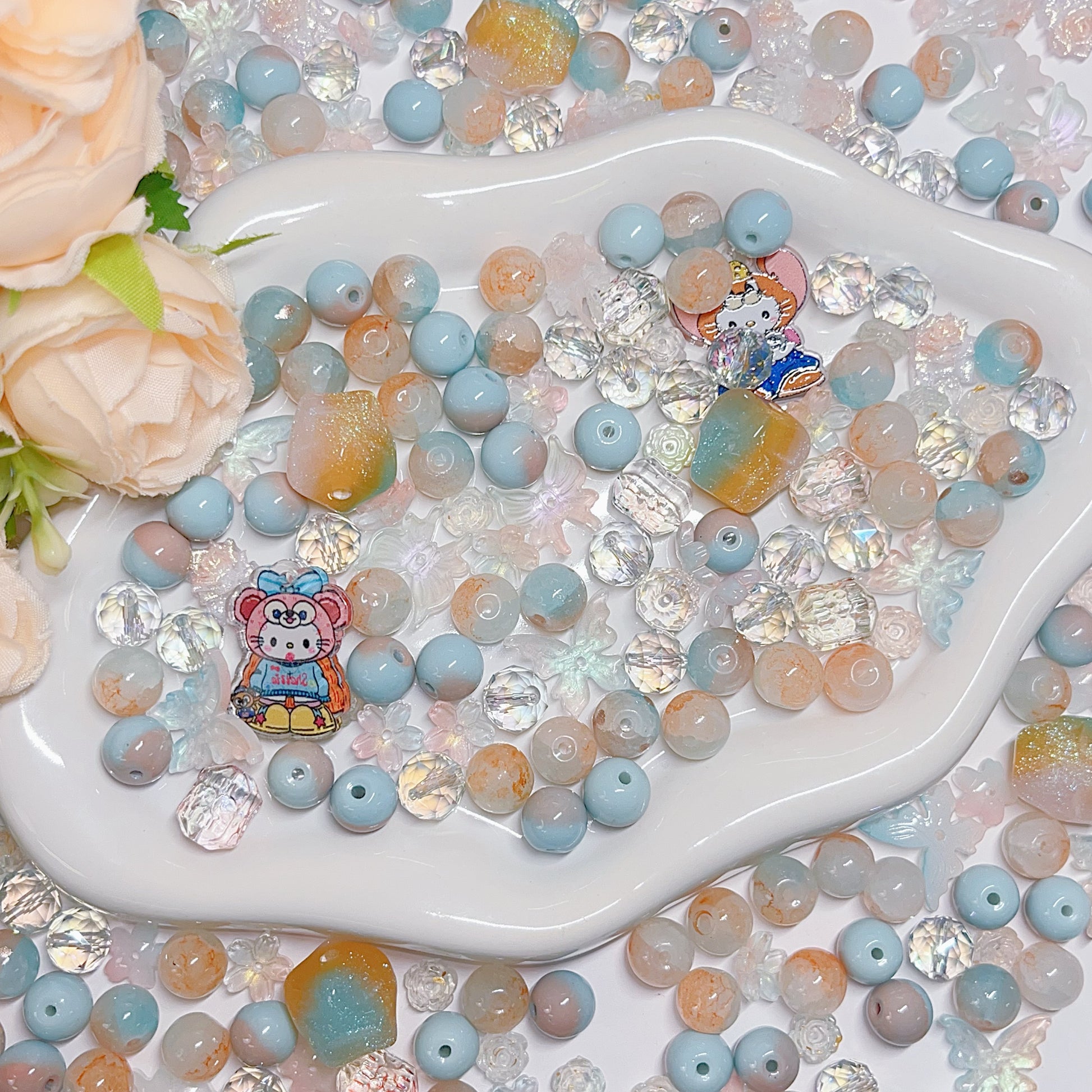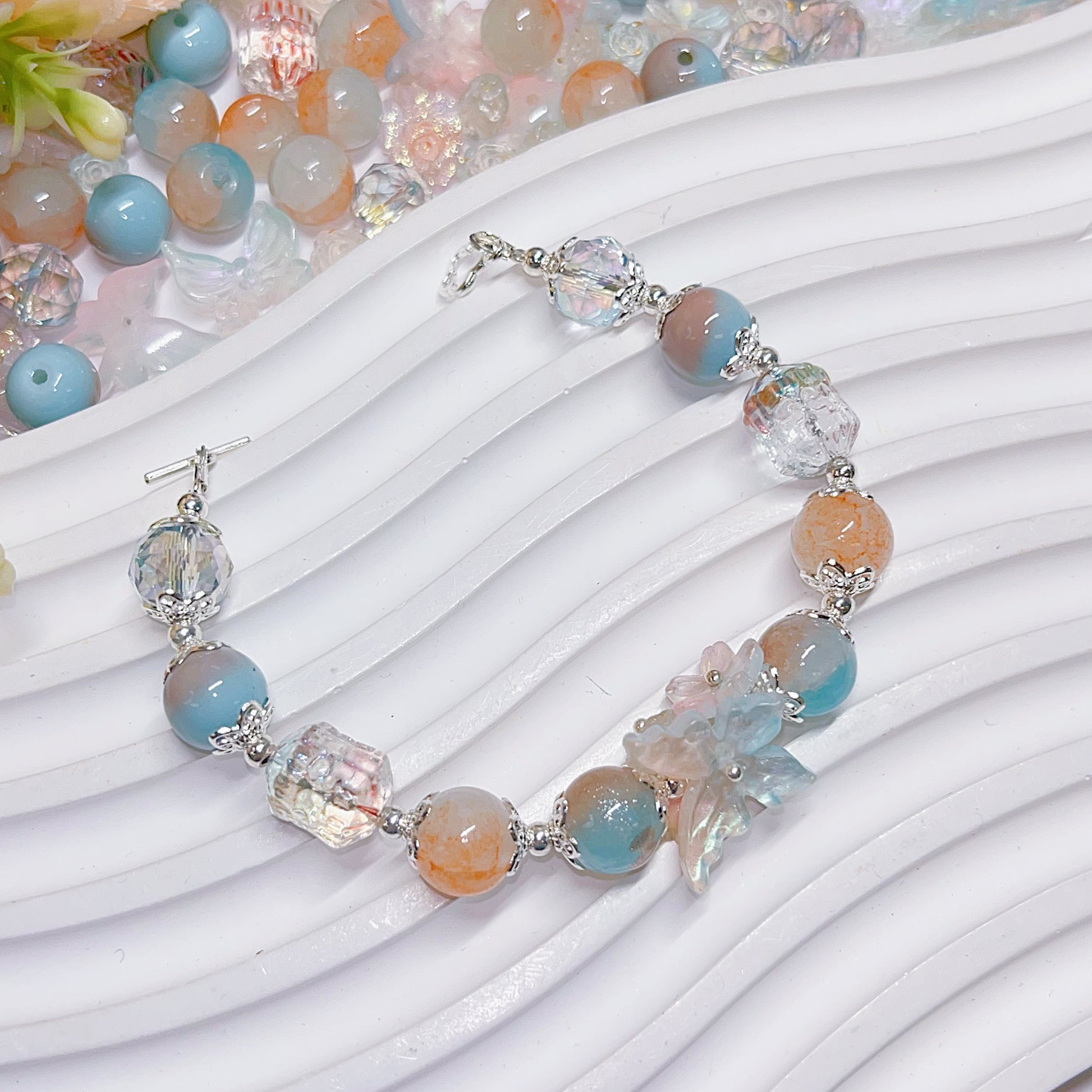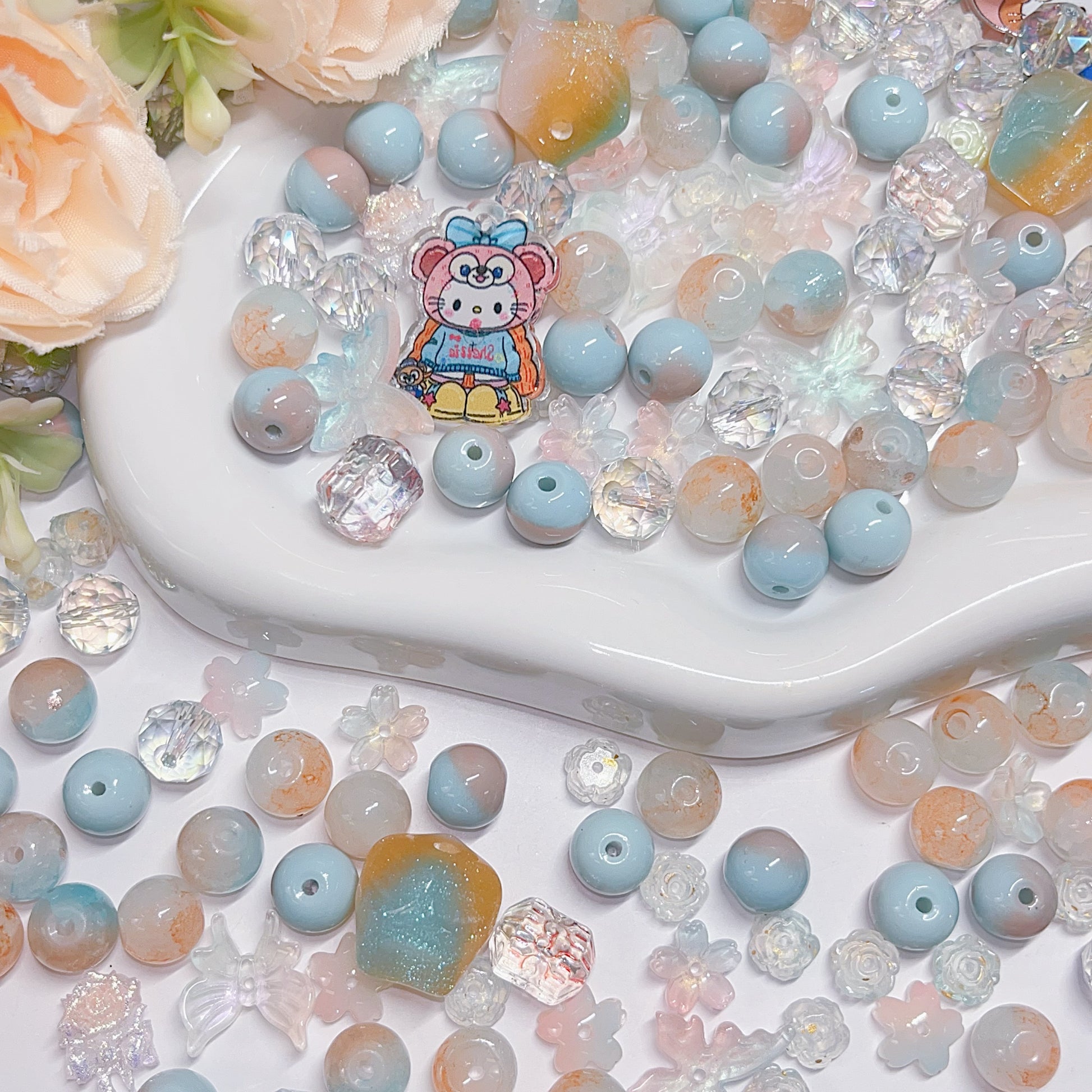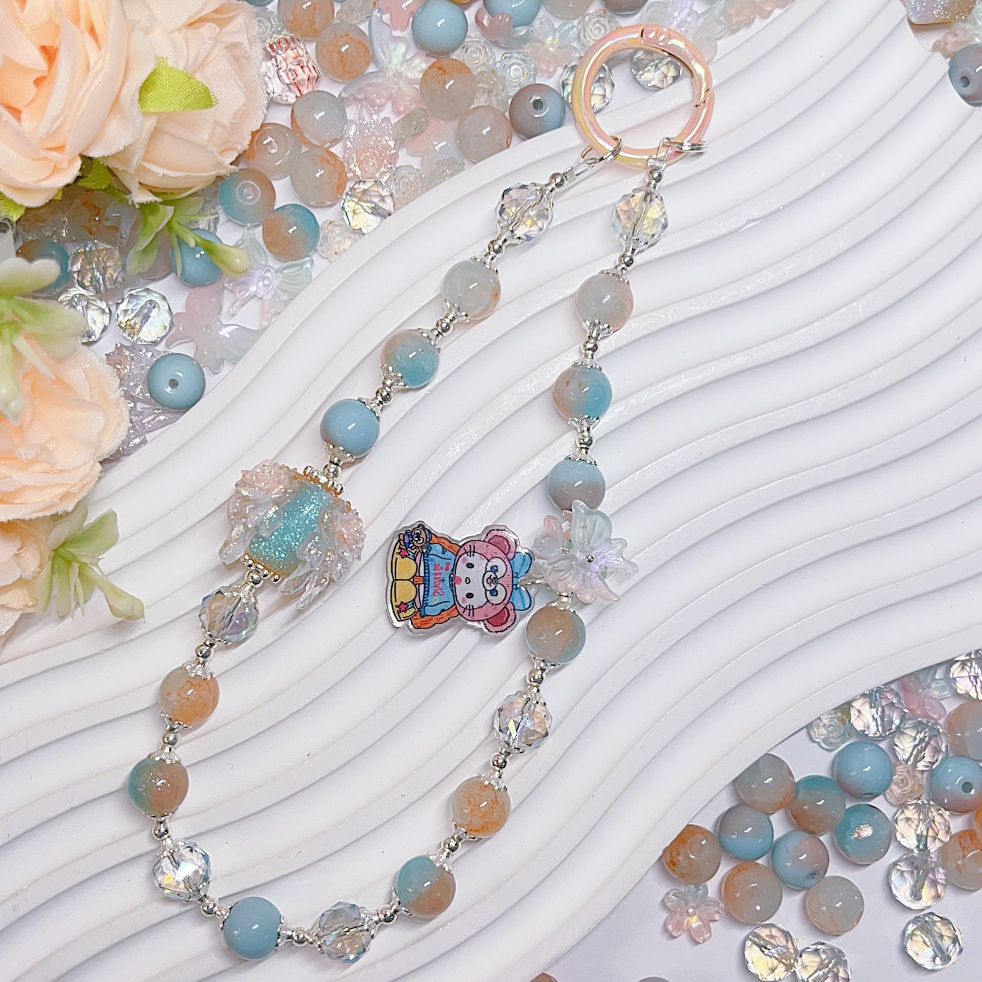 【BZ 367】雲上での踊りー高品質ガラスビーズ&柔らかい素材フラワー(夜光)&スターライトビーズ(希土晶晶)&アクリルビーズ&チャーム