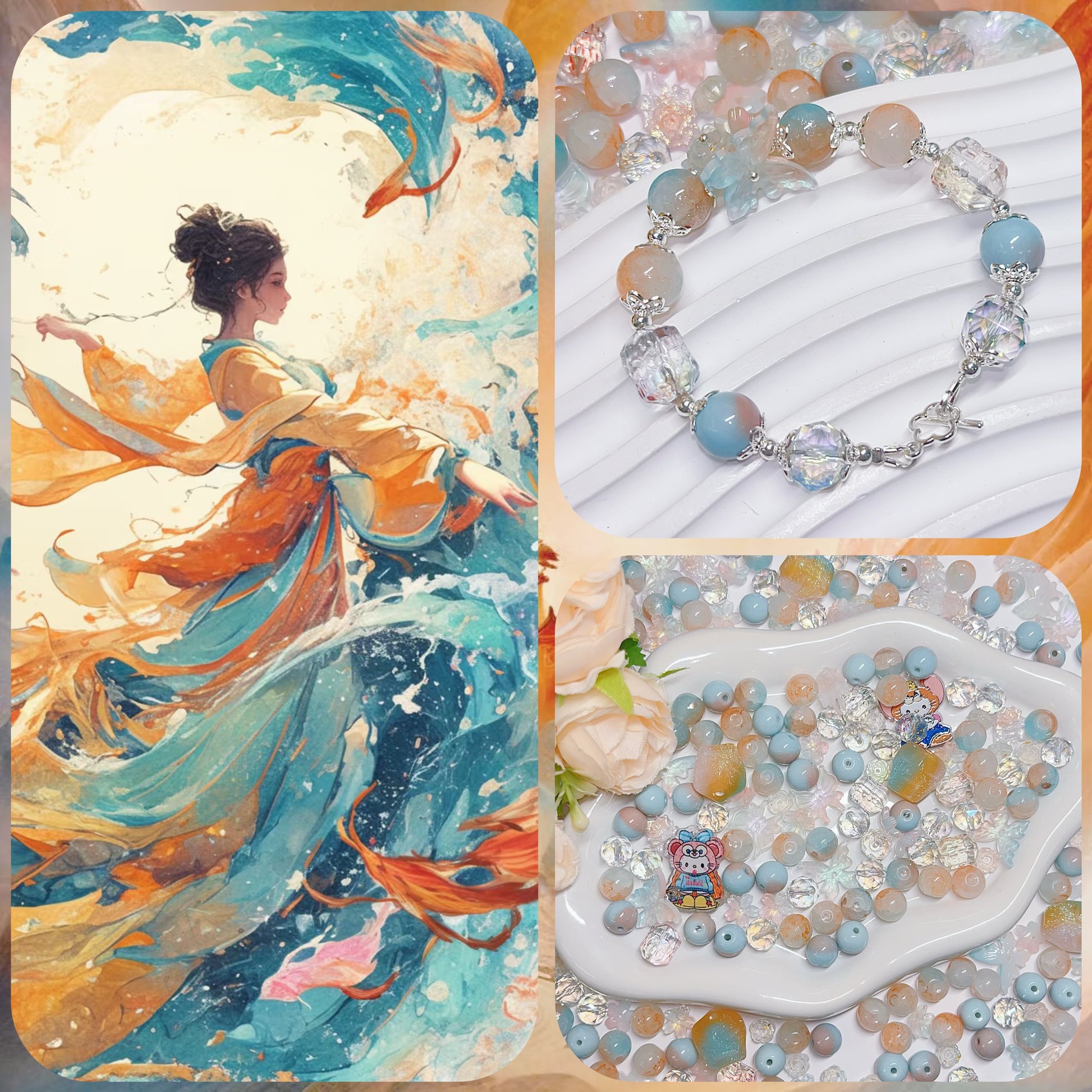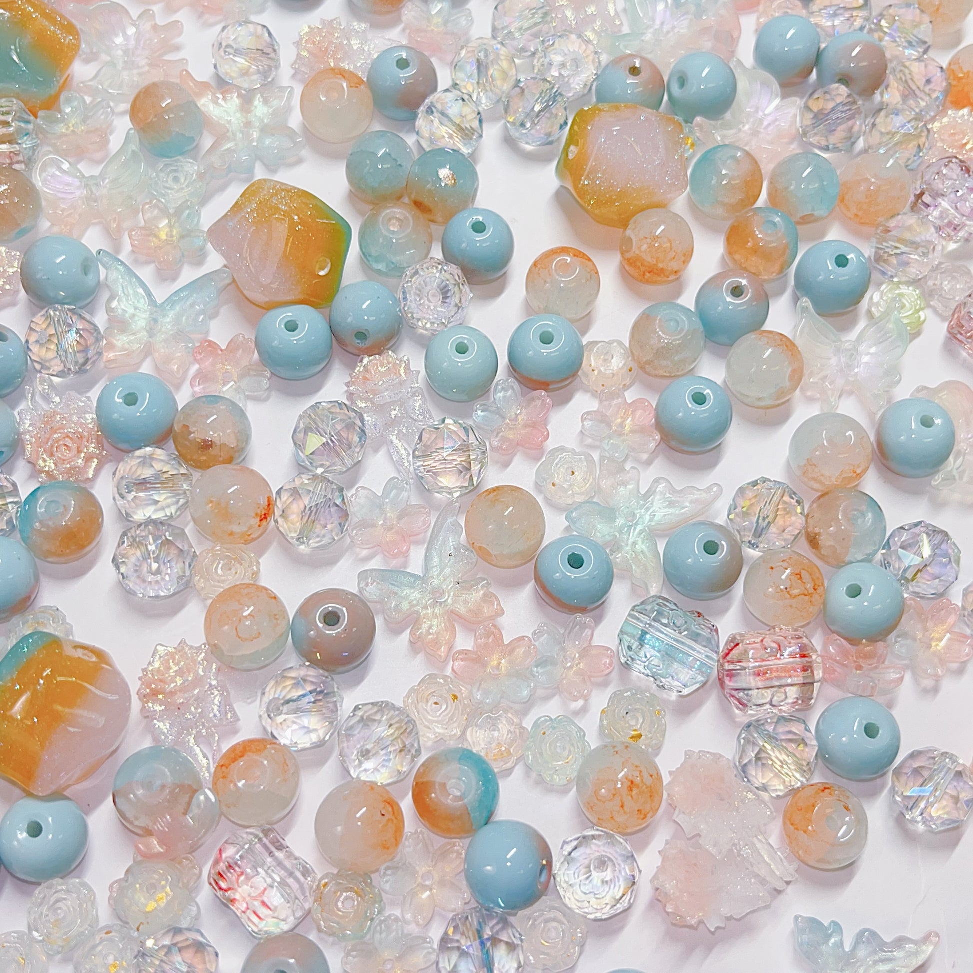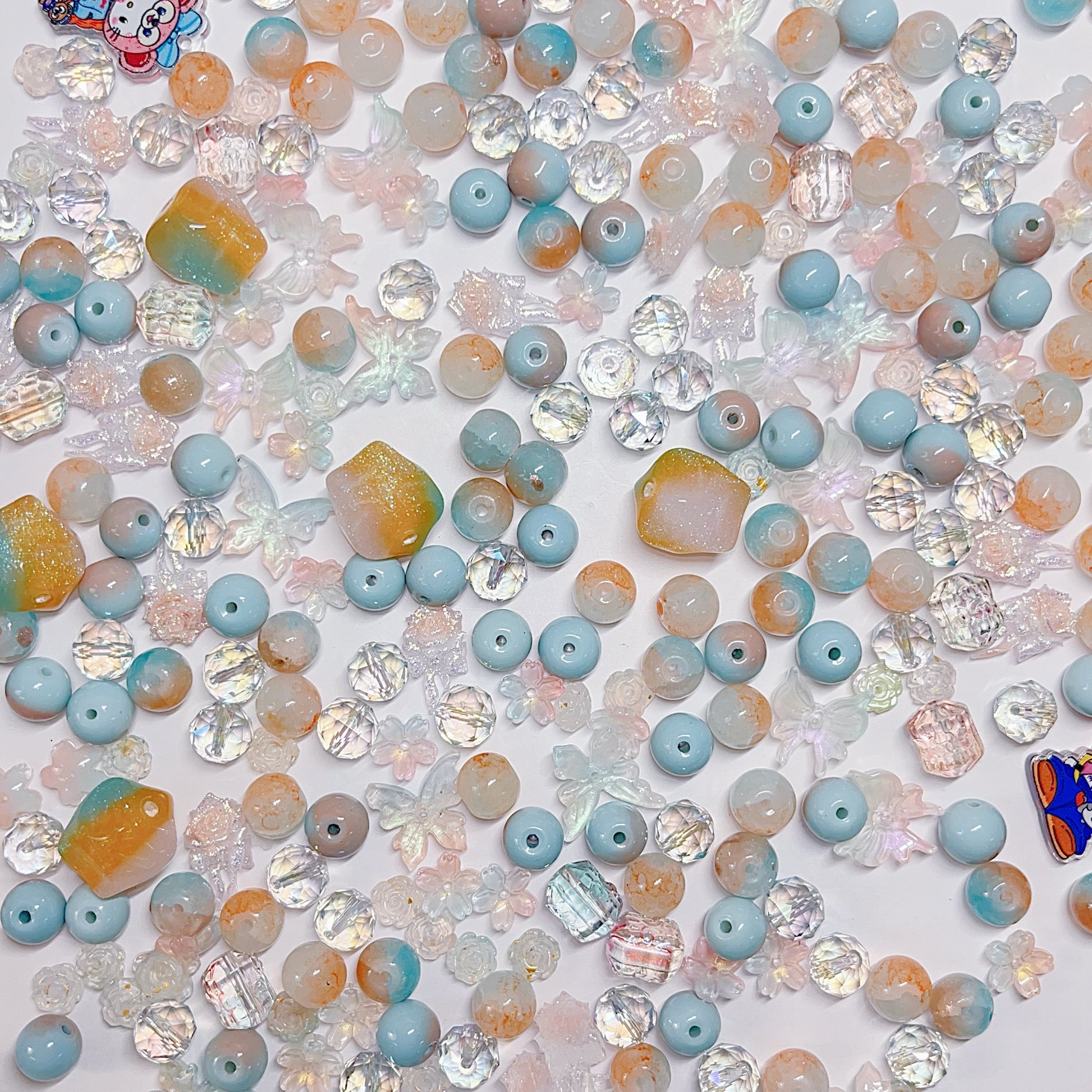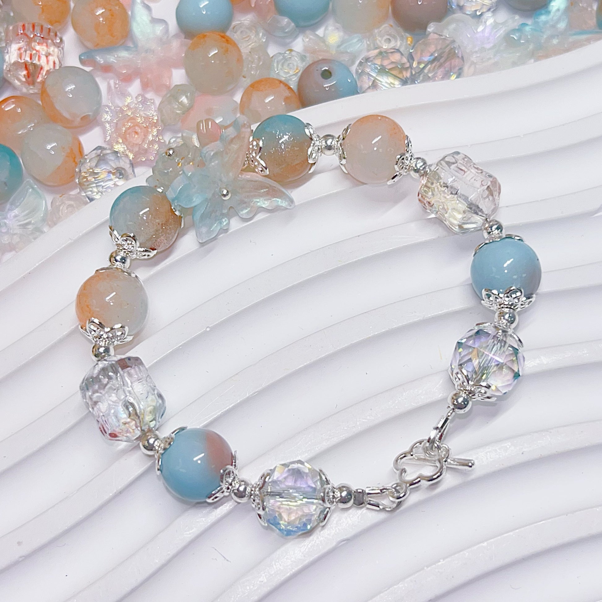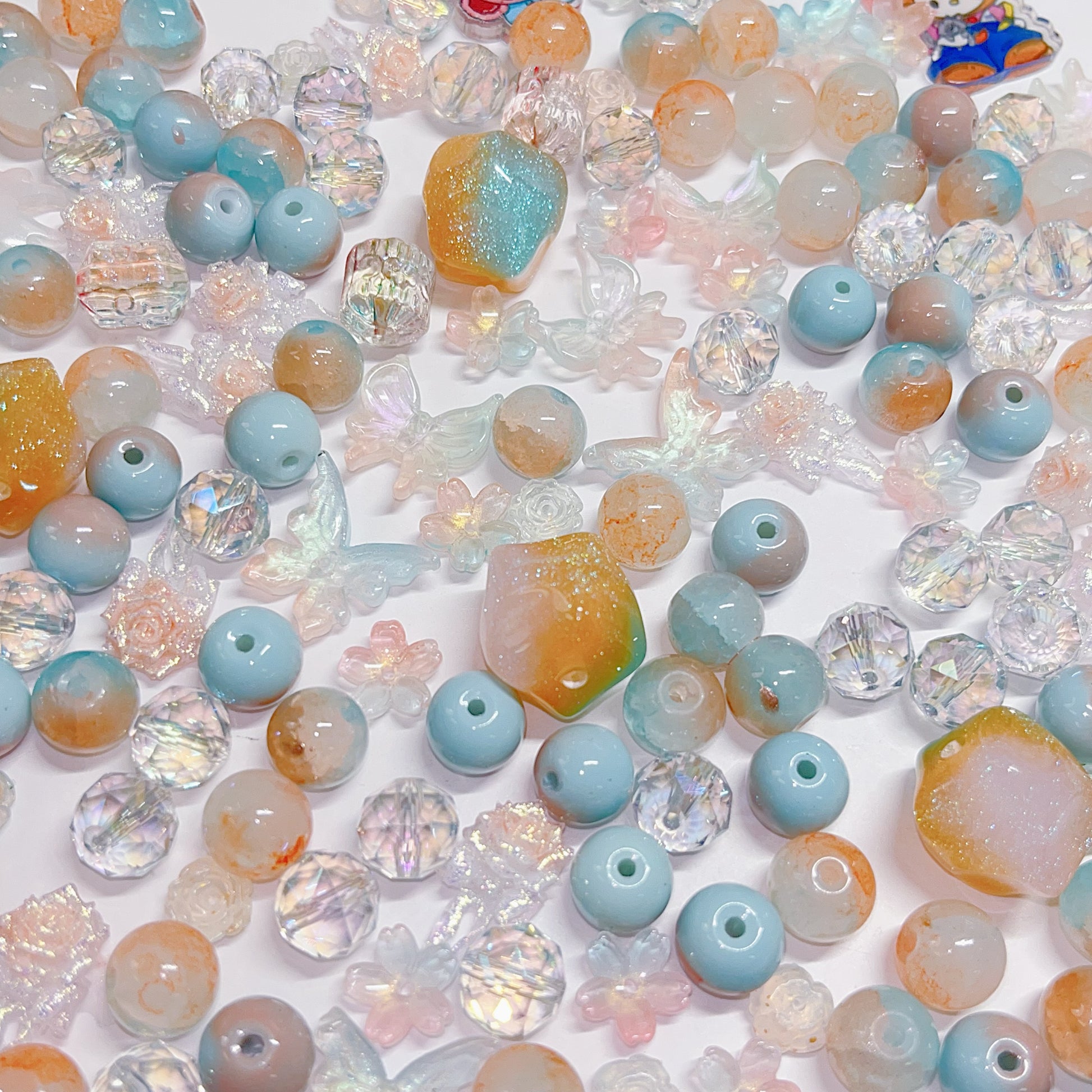 【BZ 367】雲上での踊りー高品質ガラスビーズ&柔らかい素材フラワー(夜光)&スターライトビーズ(希土晶晶)&アクリルビーズ&チャーム