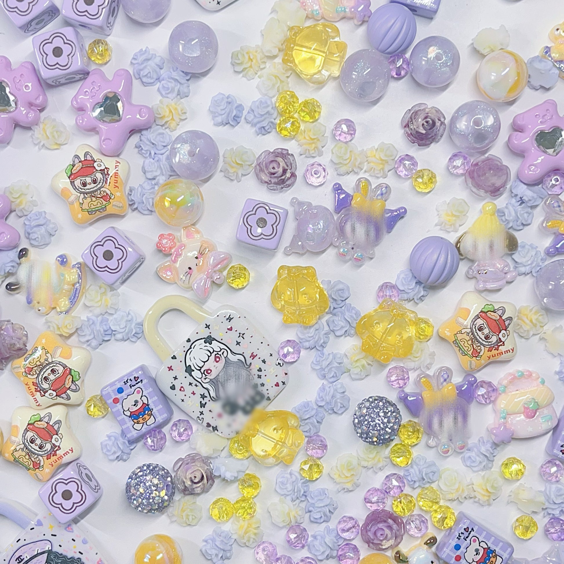 【BZ 431】夕日のラベンダーー高品質アクリルビーズ&イラストビーズ&カラーチェンジアクリルビーズ&レジンビーズ&希土晶晶&キラキラストーンビーズ&柔らかい素材フラワー(夜光)(プレゼント付き)