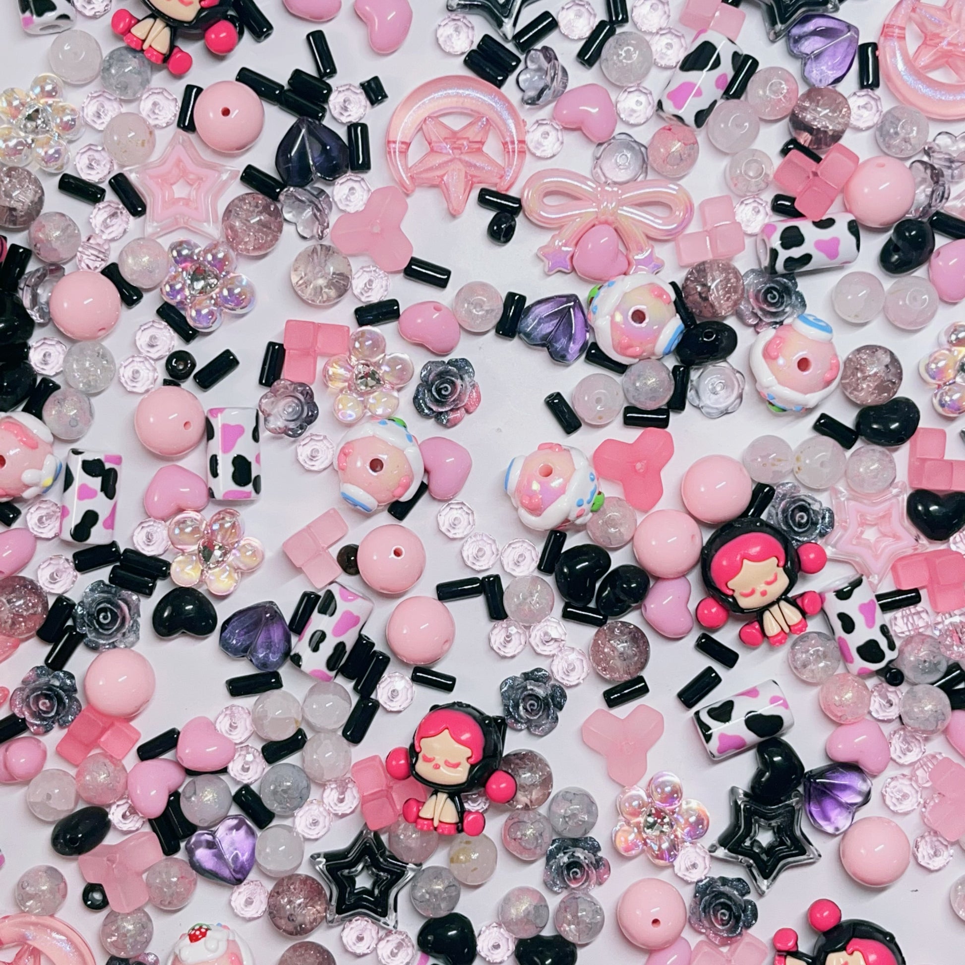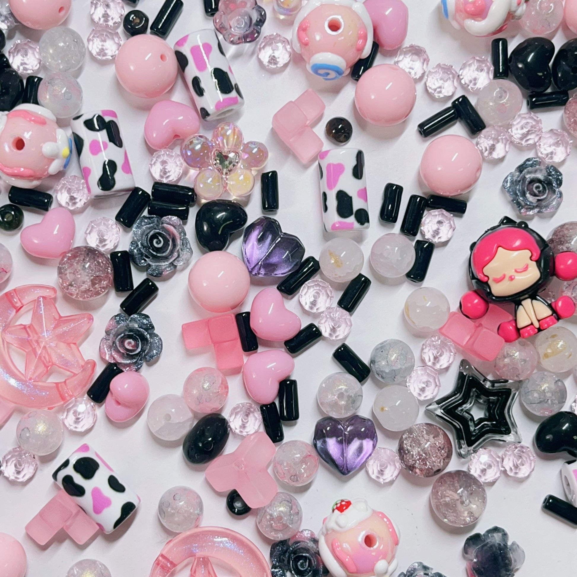 【BZ 446】甘くてかっこいいー高品質アクリルビーズ&ぷっくりペイントビーズ&ガラスビーズ&レジンビーズ(一部夜光)&キラキラストーンビーズ(プレゼント付き)