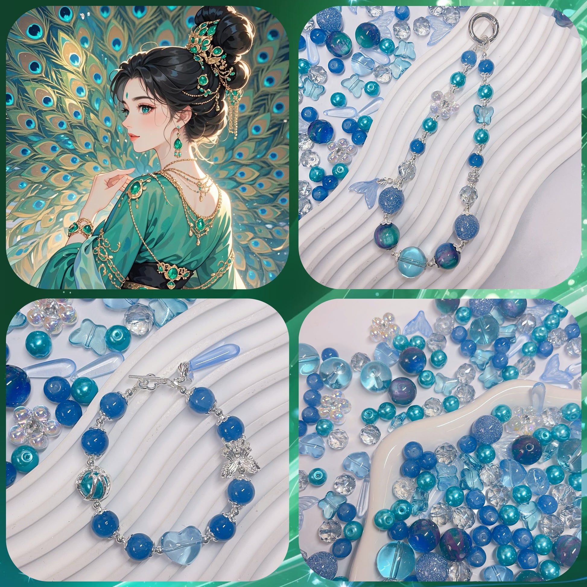 【BZ 479】翠羽ー高品質ガラスビーズ&希土晶晶&アクリルビーズ&キラキラストーン付きビーズ