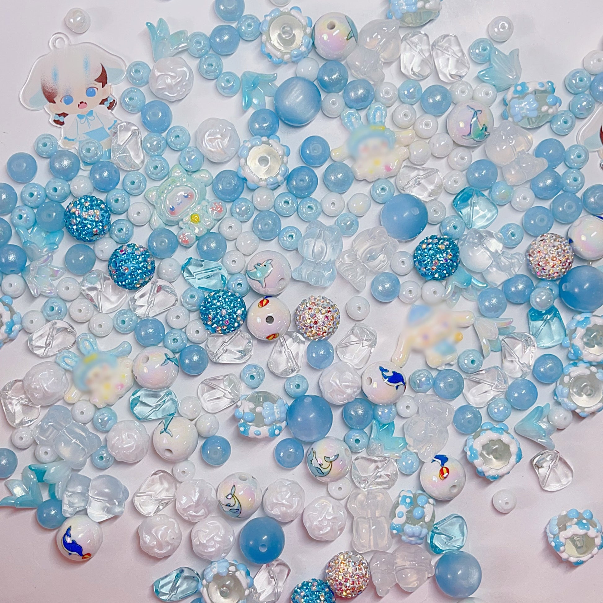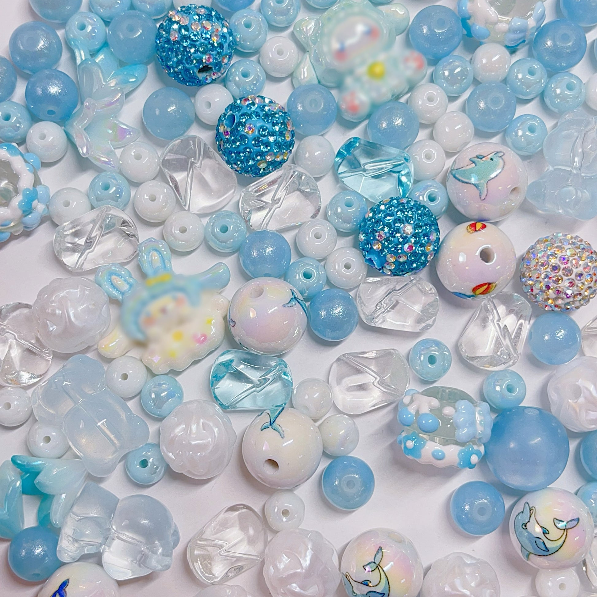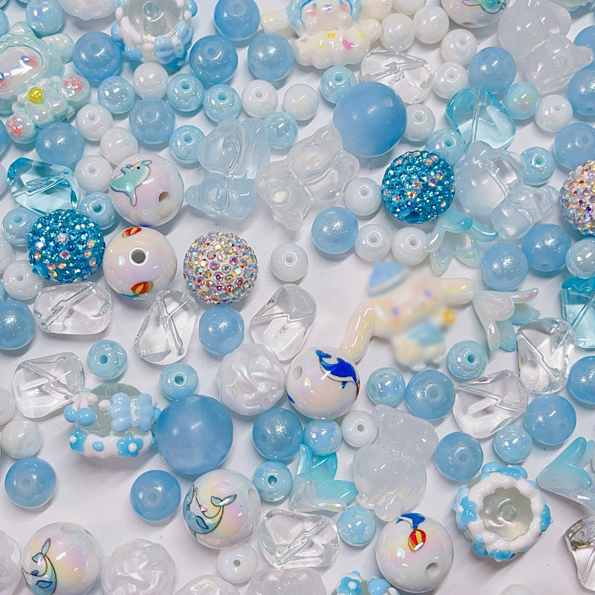 【BZ 485】しなたんの夏休みー高品質アクリルビーズ&イラストビーズ&ぷっくりペイントビーズ(夜光)&キラキラストーンビーズ&ガラスビーズ