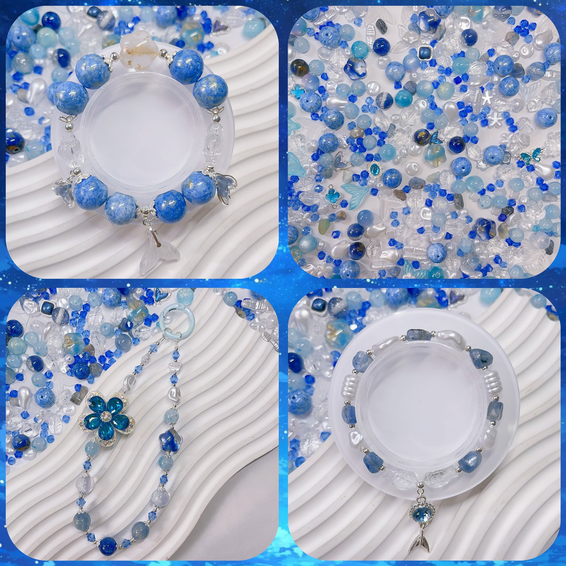 【BZ 521】星冴ー高品質ガラスビーズ&天然石(カイヤナイト) &レジンビーズ&樹脂ビーズ&ビジュービーズ&ビジューチャーム